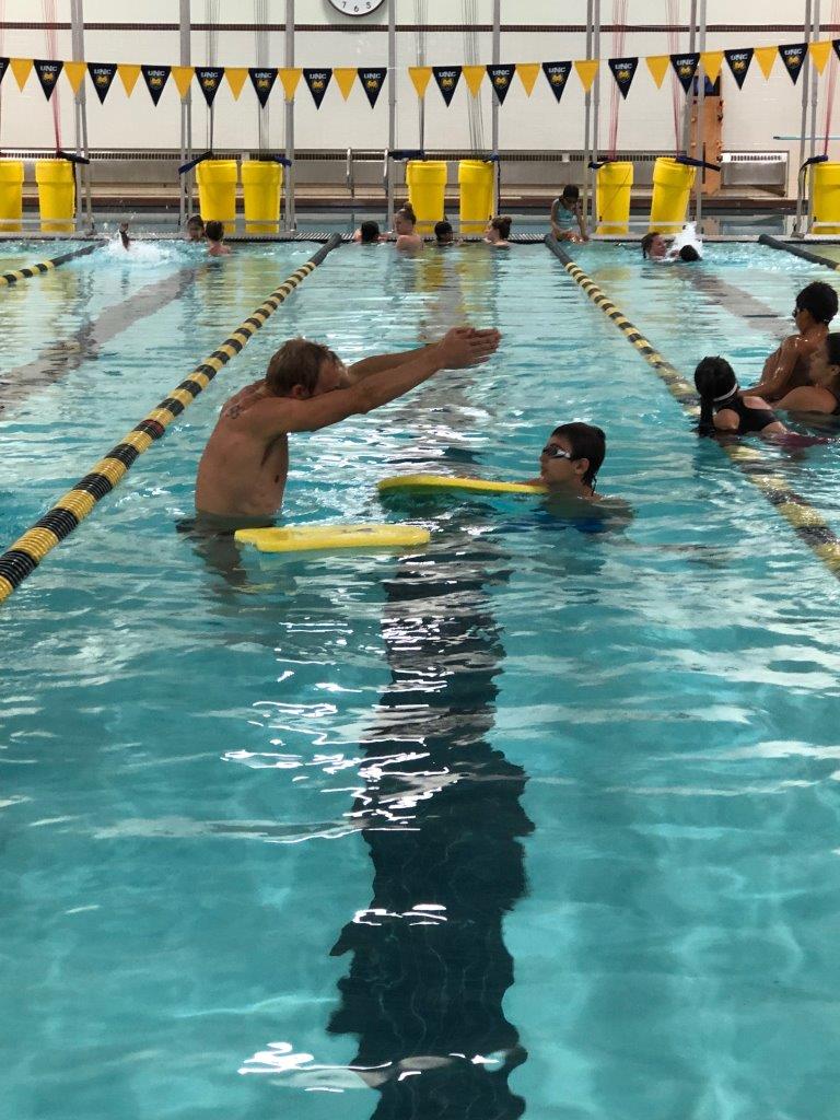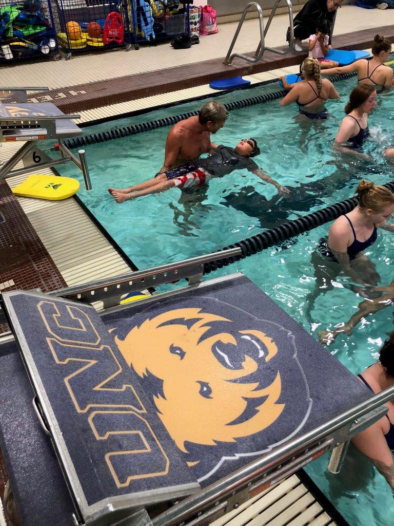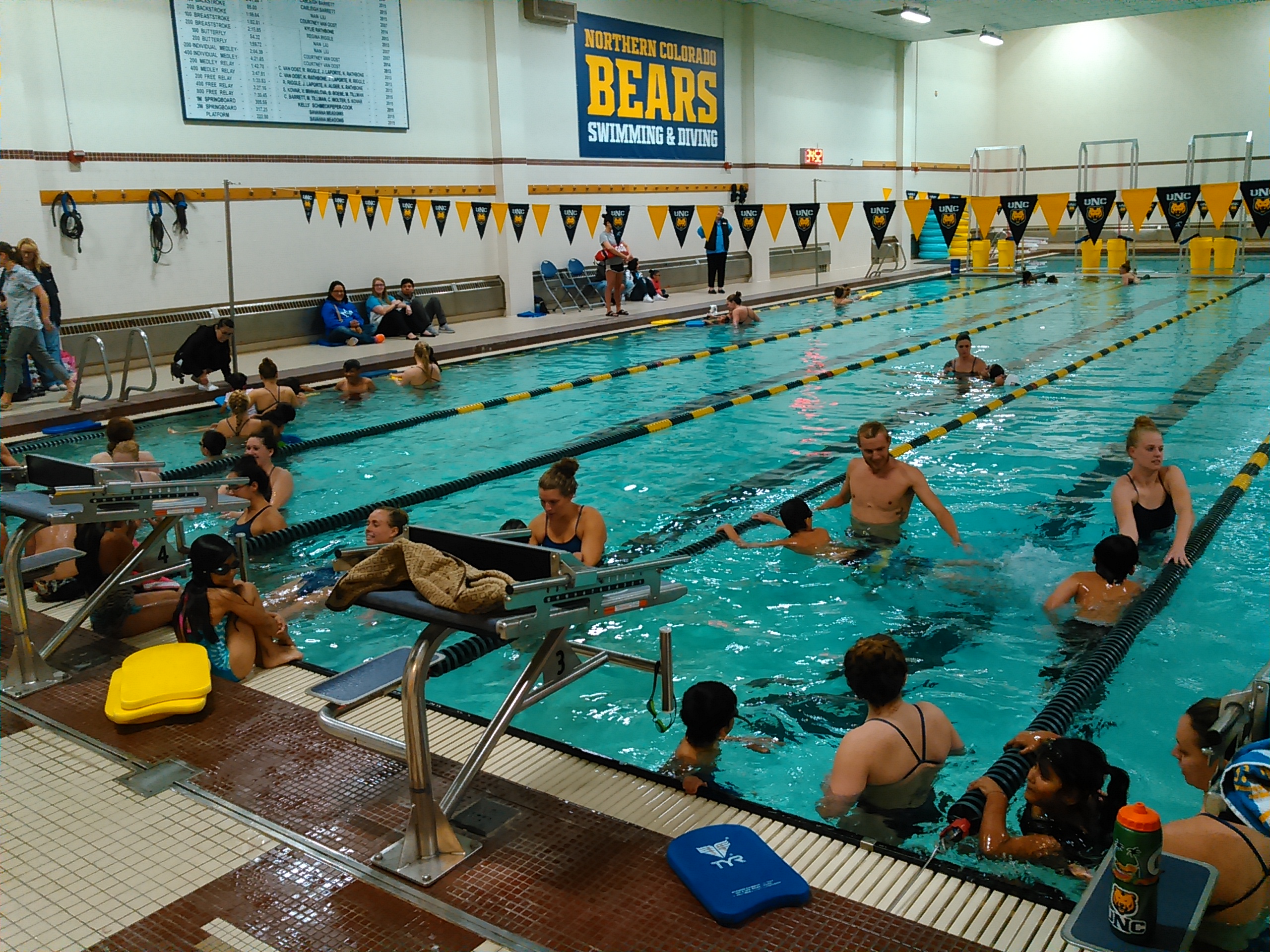 On October 28, 2017, Dolphins of the Desert co-founders Jeff Commings and Geoff Glaser returned to the University of Northern Colorado’s campus for the second edition of “Swimming With Inspiration and Motivation” in Greeley. The event featured nearly 50 children from the Greeley Transitional House and the Boys & Girls Clubs of Weld County. As was the case in our 2016 debut, the children were selected based on their family’s socioeconomic background and were given a free introductory 40-minute swim lesson. For almost all of the students, the lesson was their first formal introduction to proper swimming techniques. The members of the UNC women’s swim team served as teachers in the water. A3 Performance and TYR donated goggles for every child to use during the lesson!