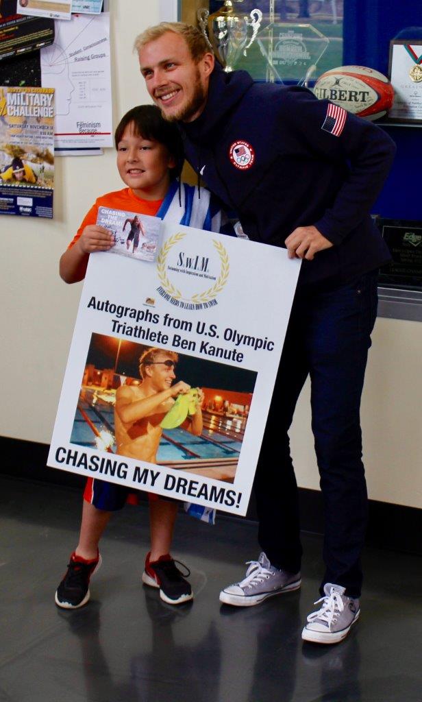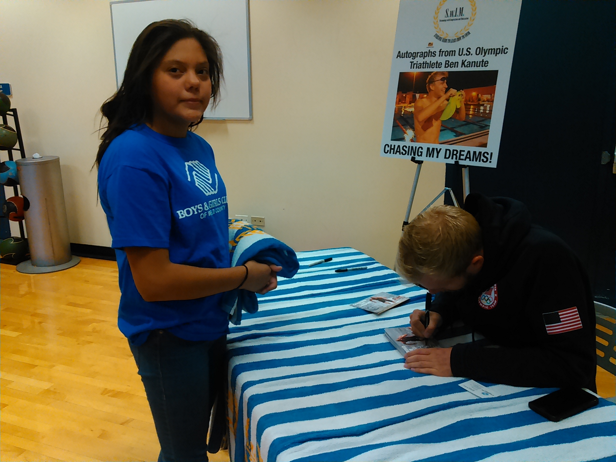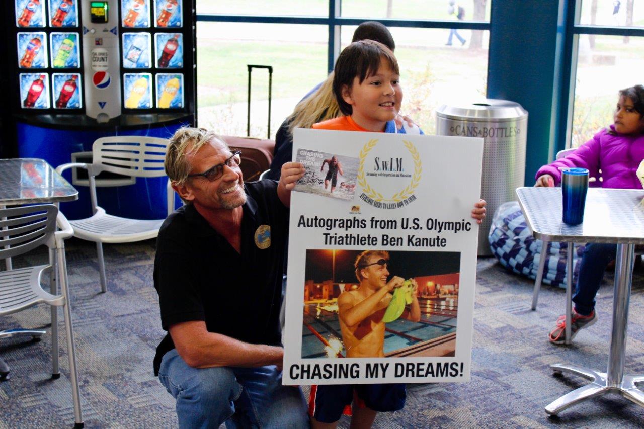 This year, Olympic triathlete Ben Kanute traveled to Greeley to speak with the children about the importance of hard work to reach goals. Kanute achieved a lifelong goal of qualifying for the U.S. Olympic team in 2016, and he spoke of working hard to achieve the goal despite people saying it would not happen. After the lesson, Kanute signed autographs and posed for photos with happy children.