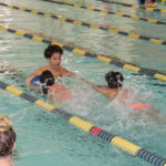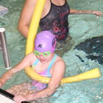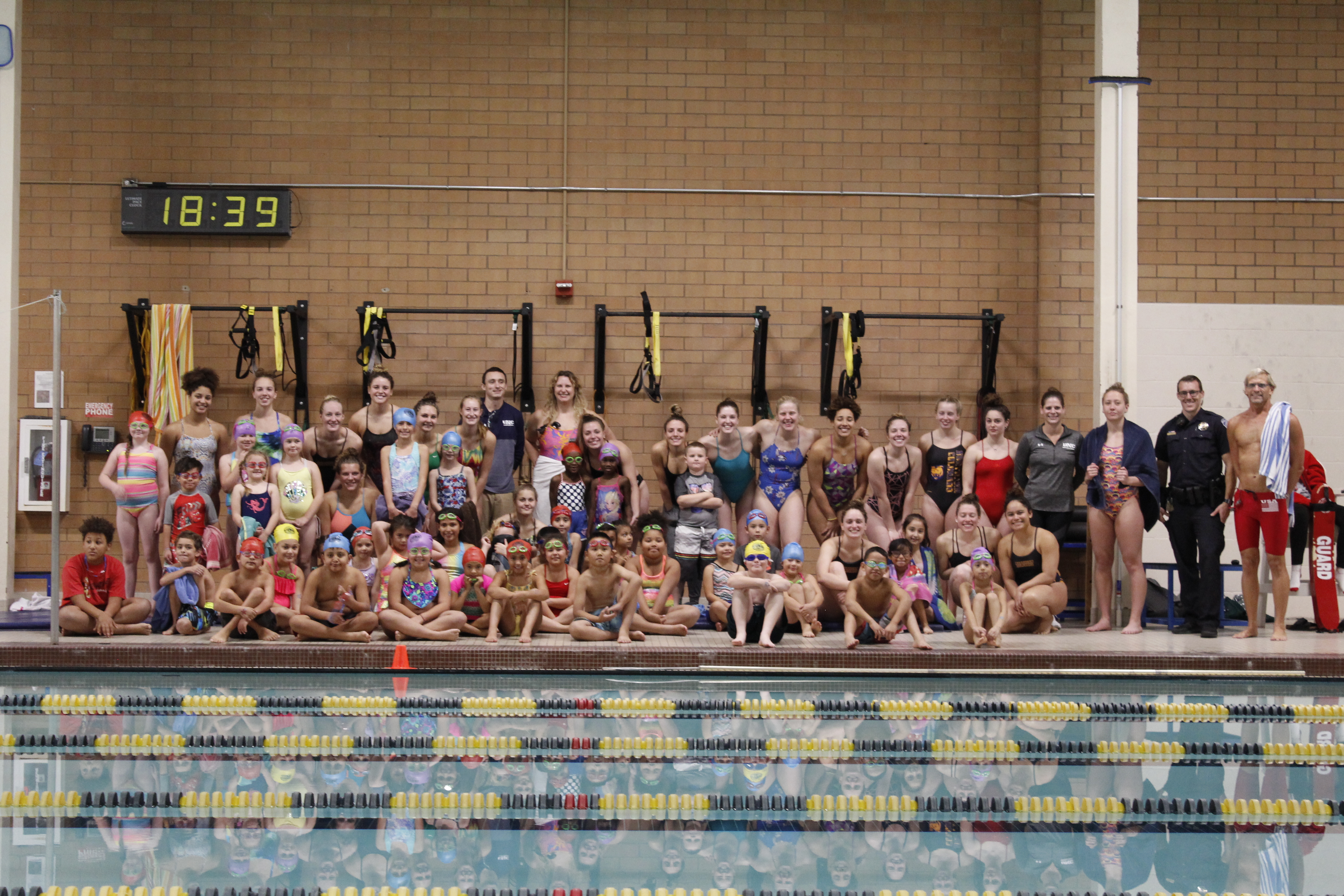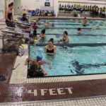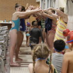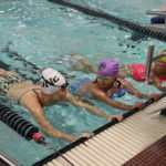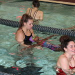 - Members of the University of Northern Colorado women’s swim team greet participants in the 2019 Swimming With Inspiration and Motivation clinic