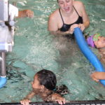 - Children take lessons with members of the University of Northern Colorado women’s swim team.