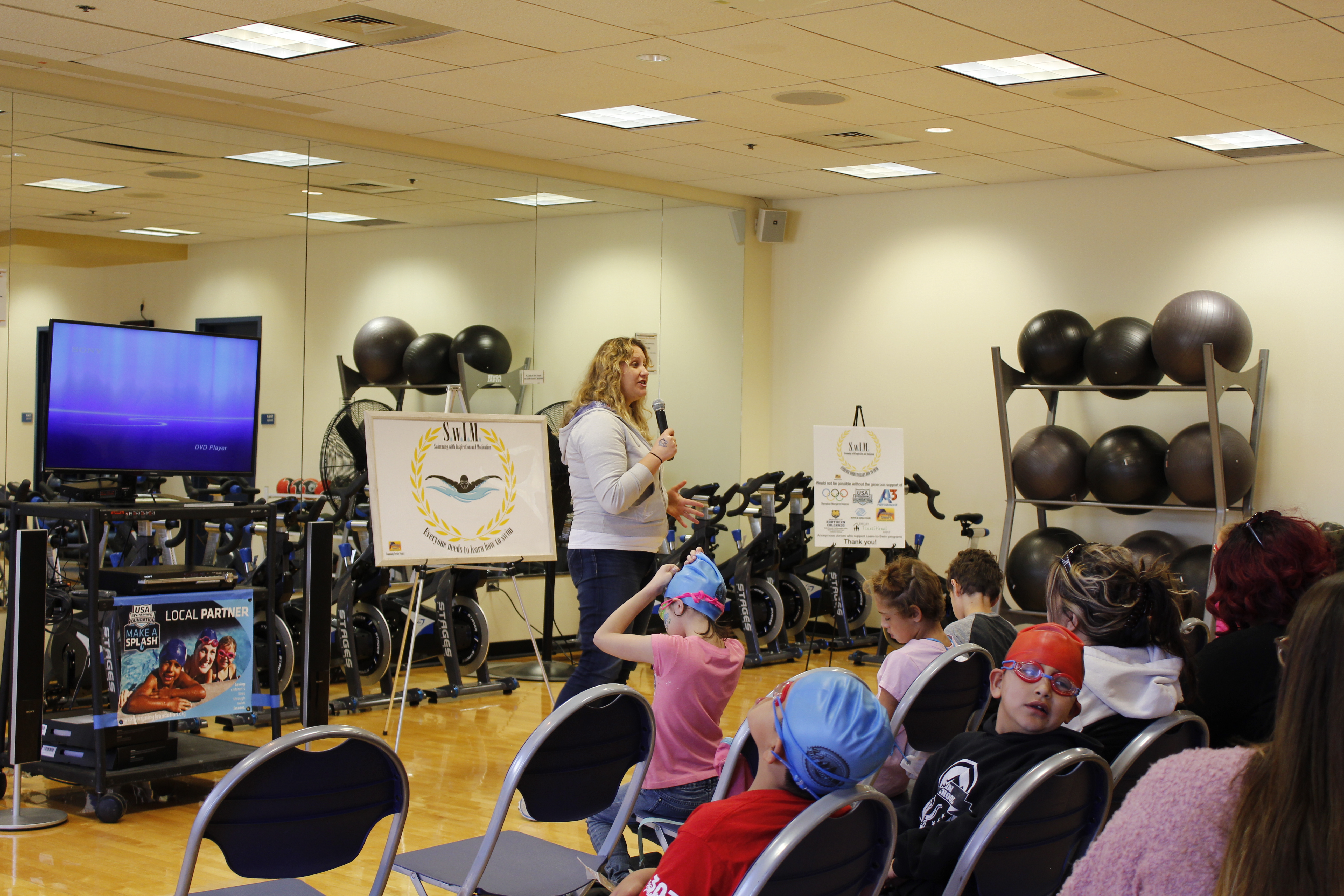 - Children listen to Olympian Margaret Hoelzer speak at the 2019 Swimming With Inspiration and Motivation clinic in Greeley, Colorado.